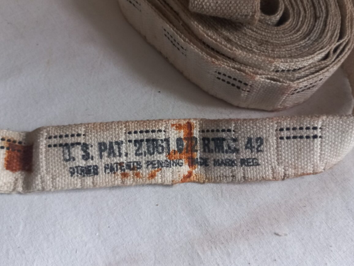 Bande de toile blanche pour 250 cartouches datée 1942 pour mit. cal.30 1919A4 en TBE. Voir photo d’origine ci-jointe.