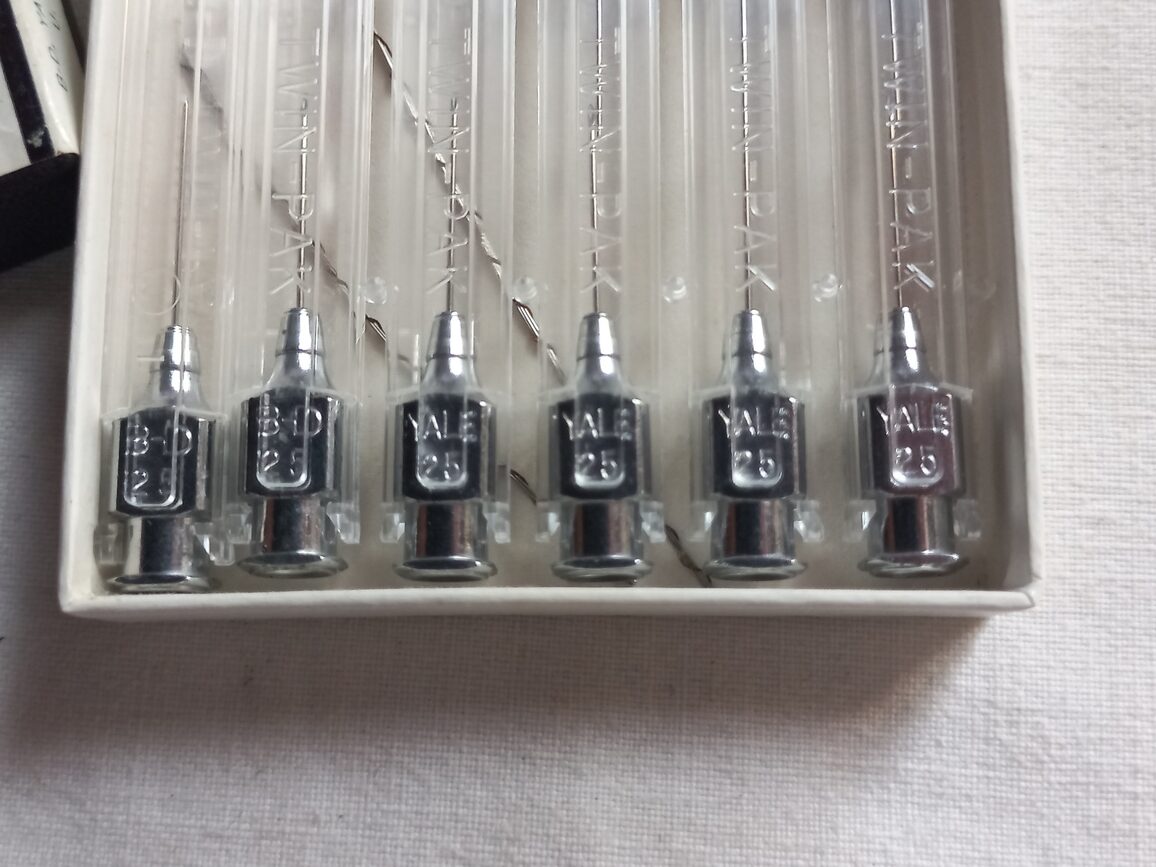 Boite de d’aiguilles pour seringue (size 5/8) d’origine en TBE. Elles se montent sur les seringues réglementaires US vendues à part (voir photo).