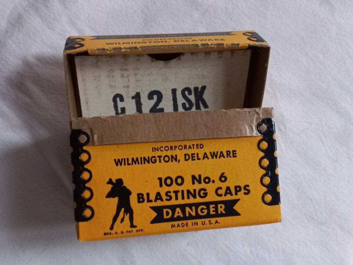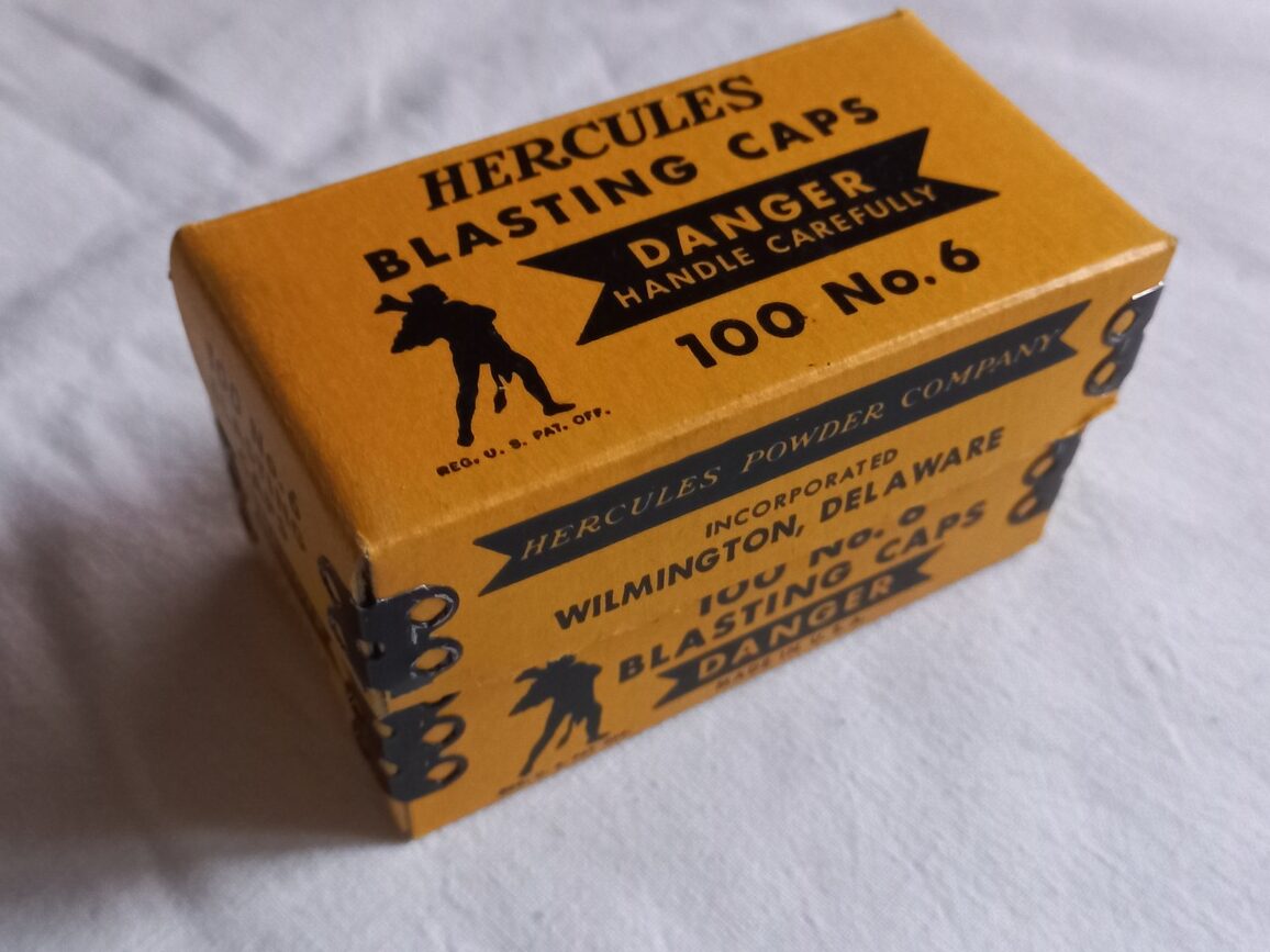 Boite vide originale en carton pour 100 détonateurs fabriquée par HERCULES.