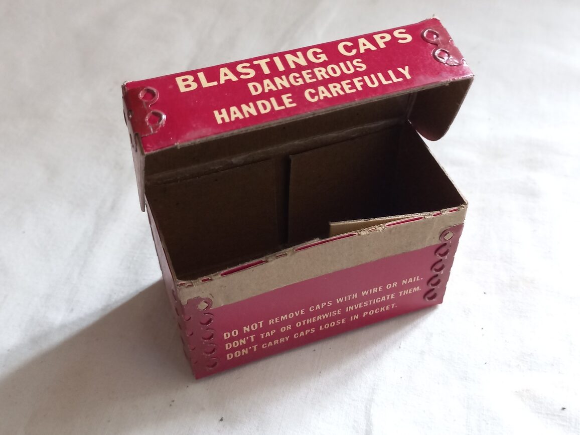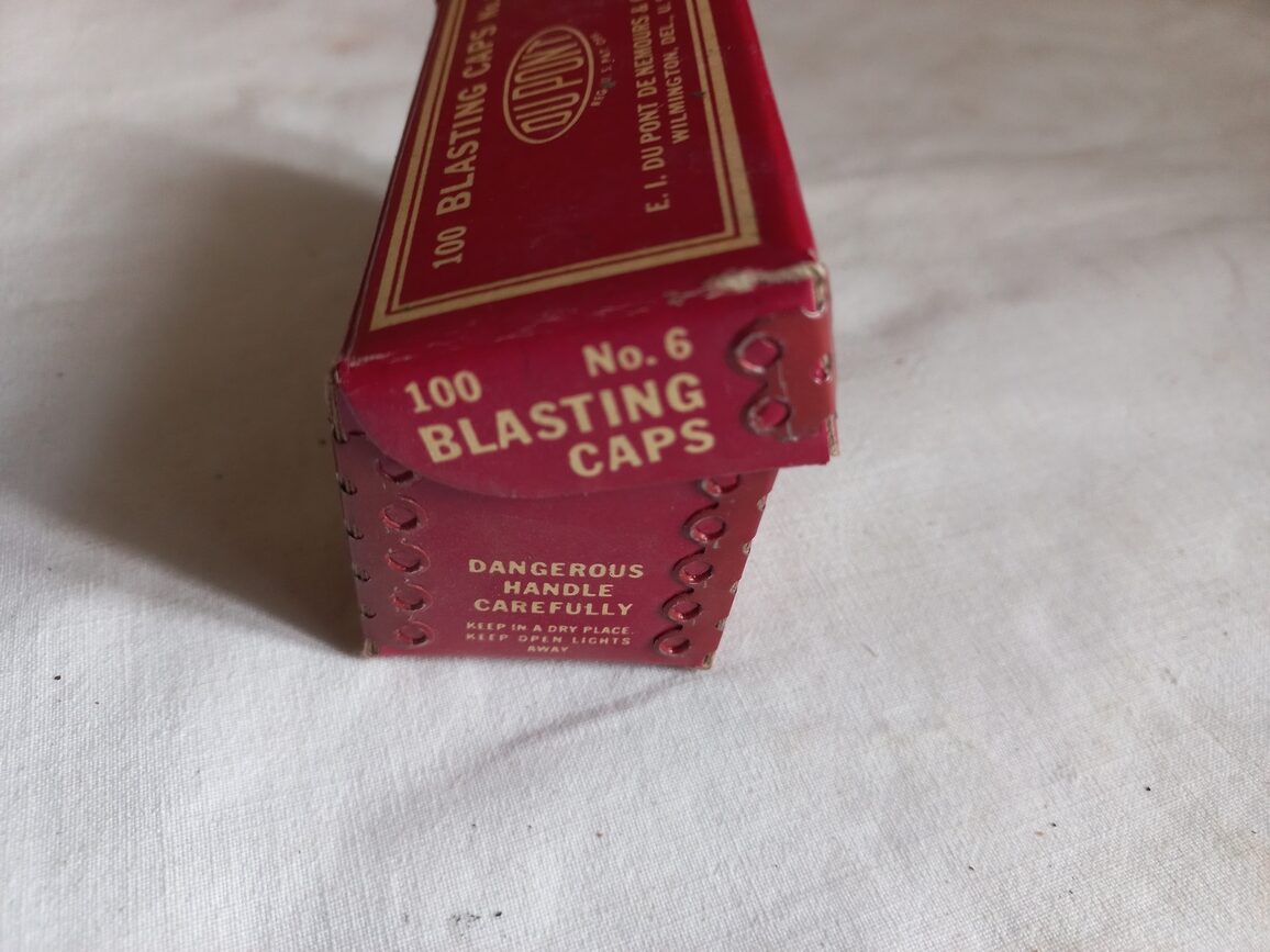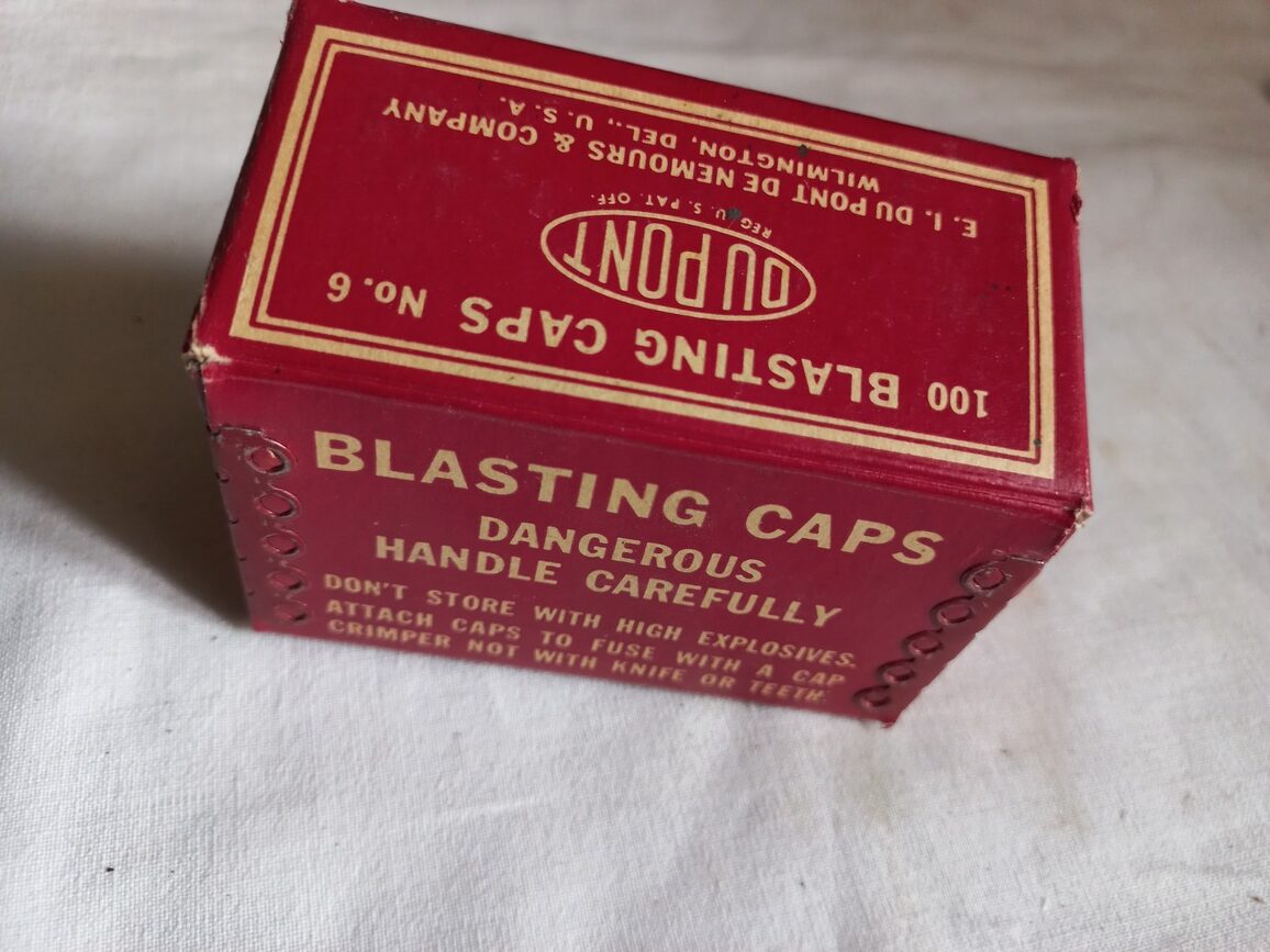 Boite vide originale en carton pour 100 détonateurs fabriquée par DUPONT. Article en TTBE.