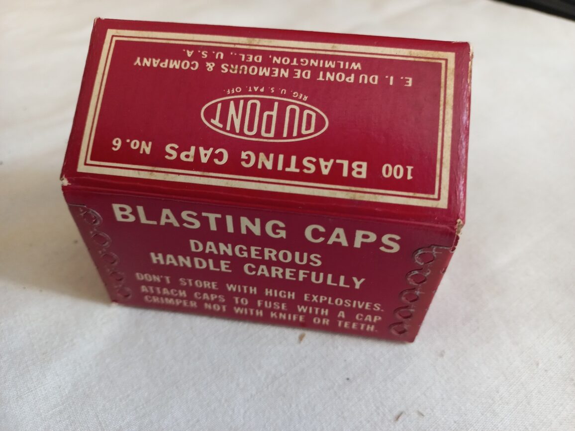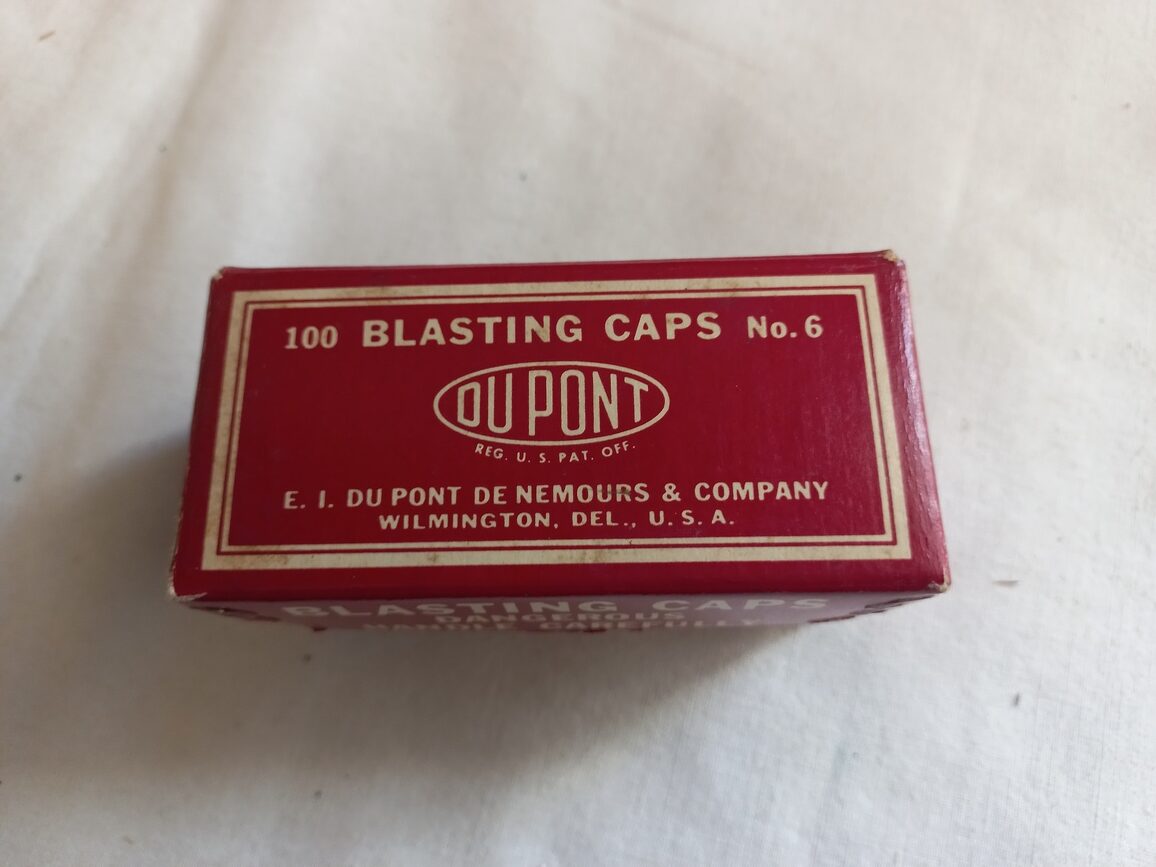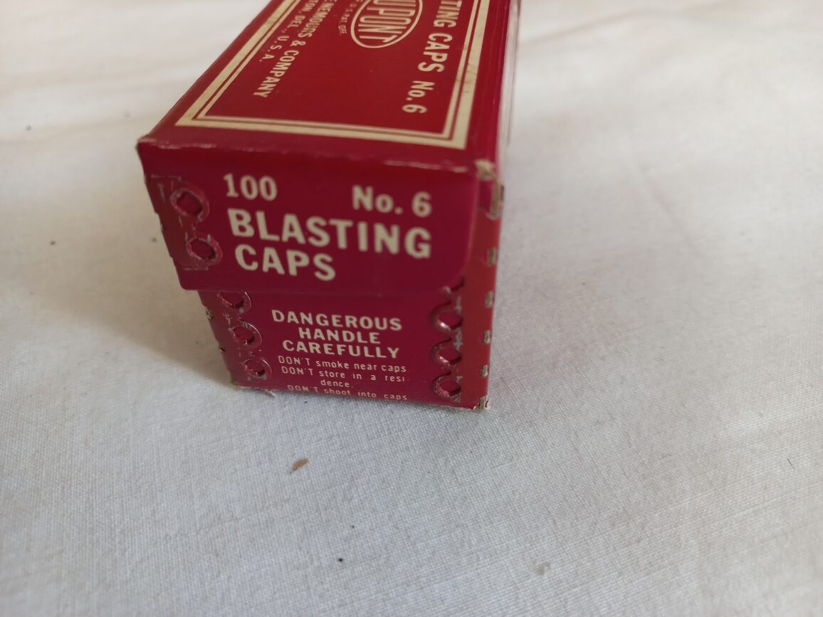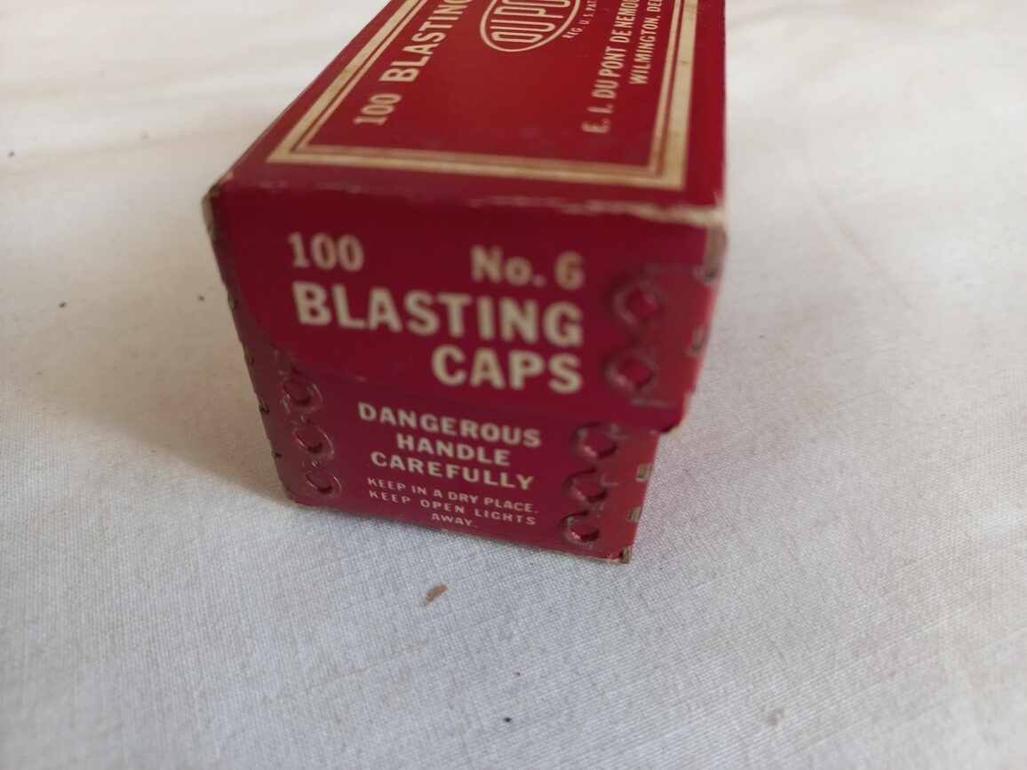 Boite vide originale en carton pour 100 détonateurs fabriquée par DUPONT.
