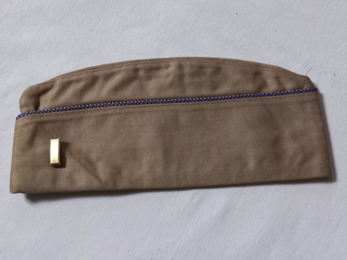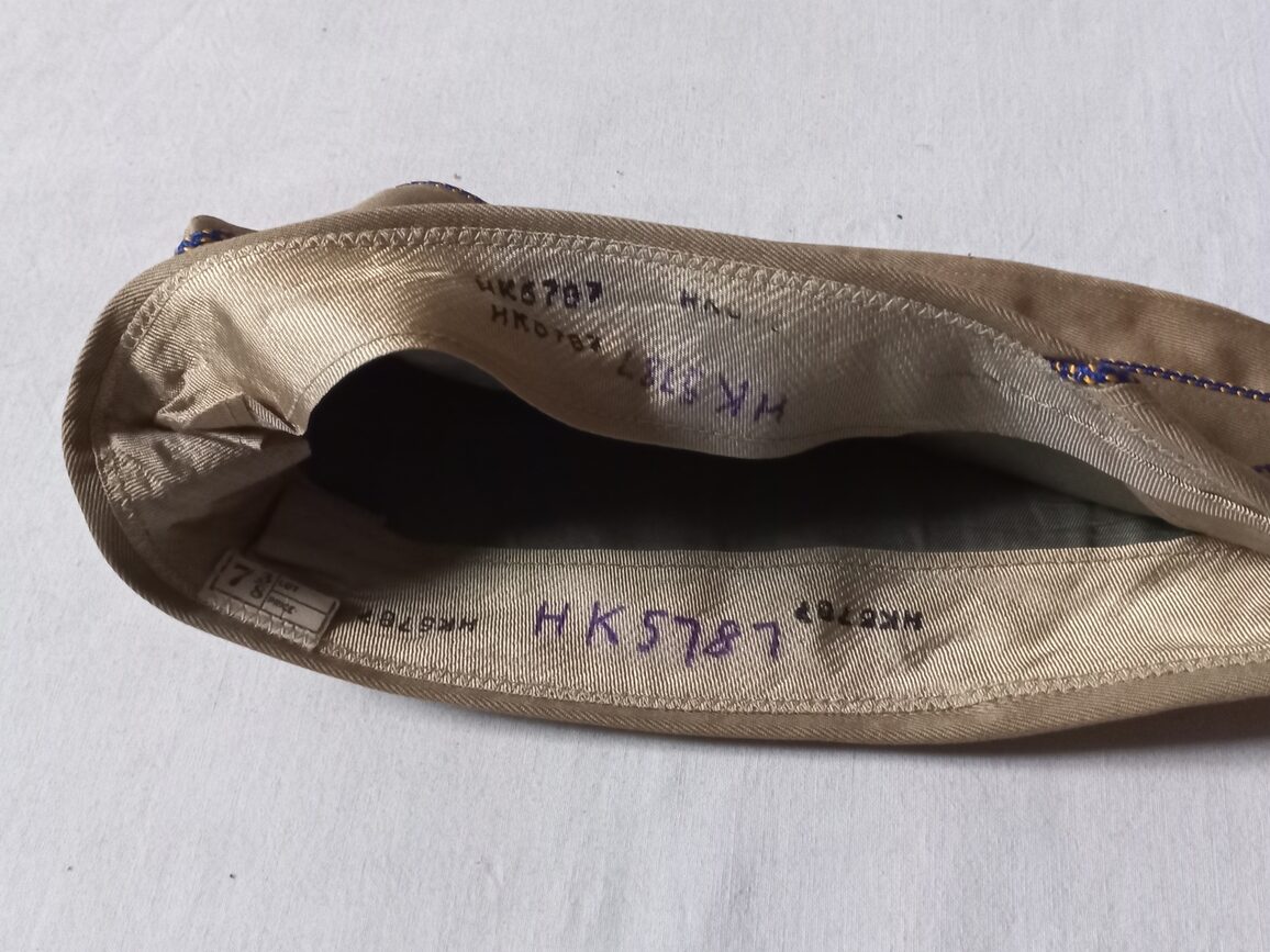 Calot en toile chino original en TTBE en taille 58/59fr de confection tailleur. Présence du matricule HK-5787 tamponné à de nombreuses reprises.