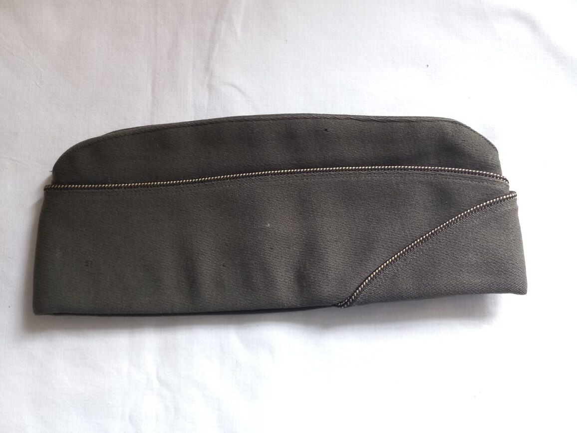 Beau calot en laine daté 1944 en TBE en taille 57 fr avec passepoil doré/noir et grade de capitaine. A noter quelques petits trous de mite sans gravité.