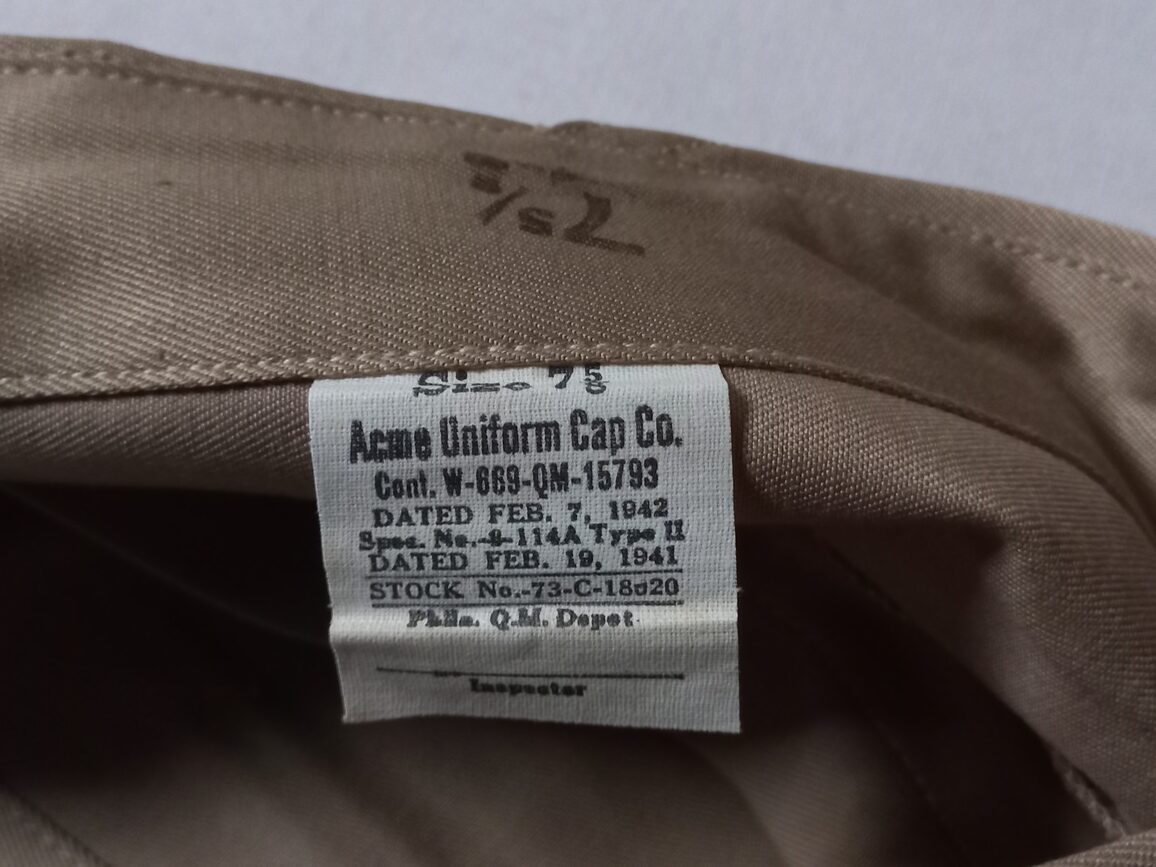 Calot en toile chino troupe daté 1942 en TTBE en taille 58/59 fr. Ce type de coiffure a été porté en Normandie comme l’atteste cette photo de 1944.