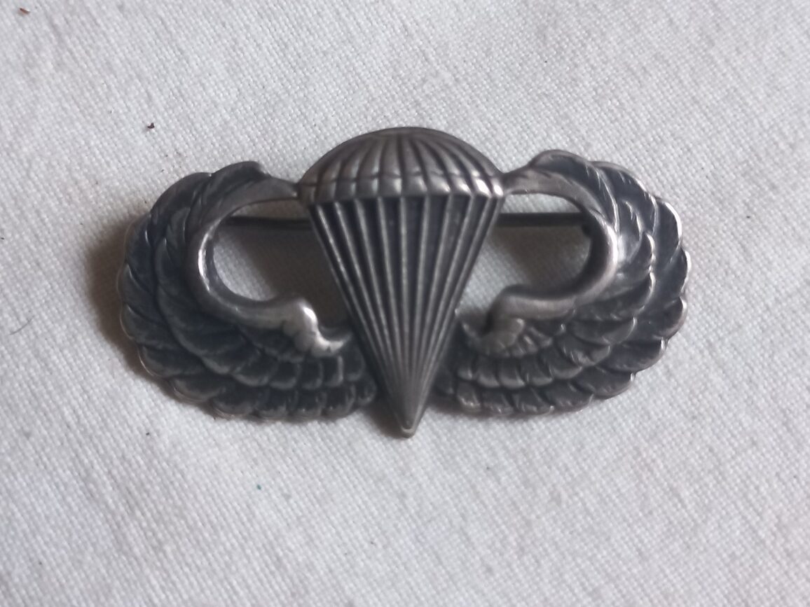Beau brevet original à épingle de parachutiste marqué « sterling by ORBER ».