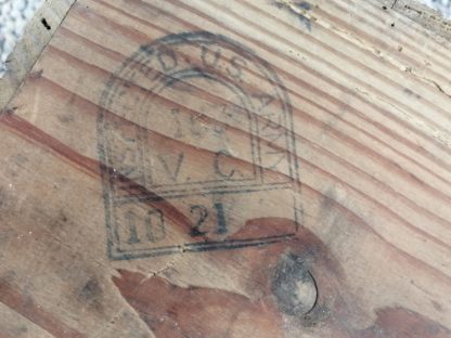 Caisse de ration C du terrain en TBE avec une partie supérieure encore présente.