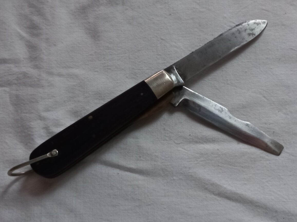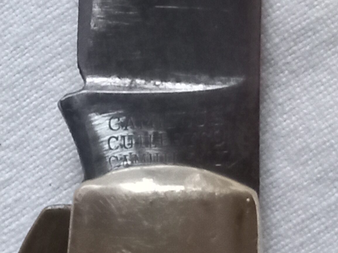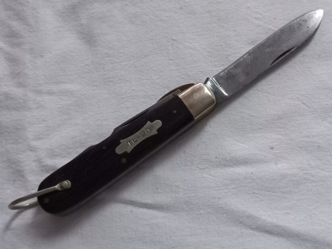 Couteau du 1er modèle en TBE marqué « CAMILLUS ». Le sigle TL-29 est gravé coté gauche sur une plaquette métallique. Utilisé dans les trousses de monteur de ligne du signal corps ou les équipes de démolition du génie US.