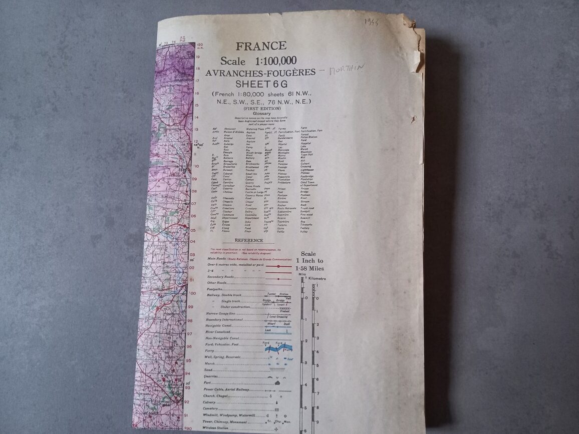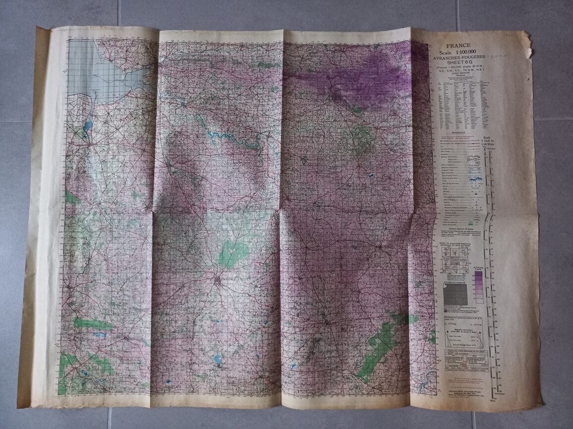 Carte originale AVRANCHES/FOUGERES/MORTAIN datée 1944 (1/100000′)