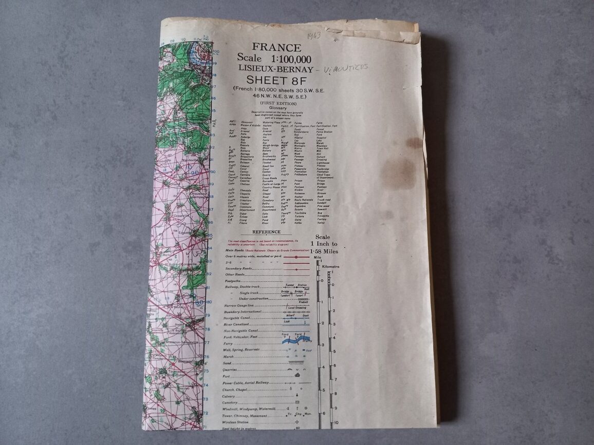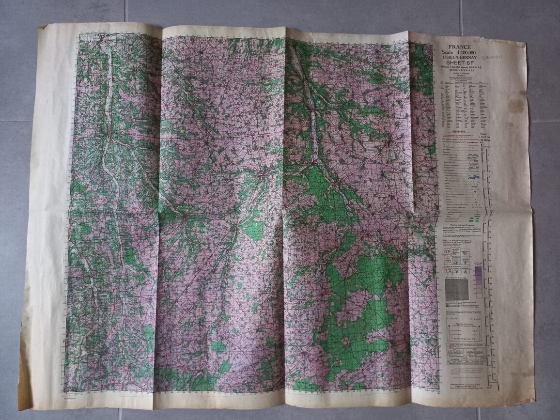 Carte originale LISIEUX/BERNAY/VIMOUTIERS datée 1943 (1/100000′) de fabrication US.