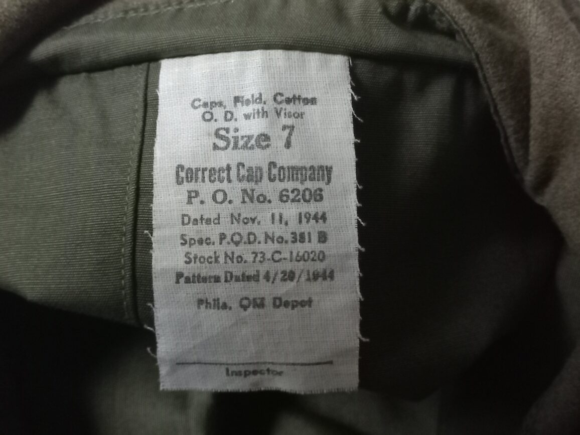 Rare casquette M43 originale datée 1944 du modèle précoce en TTBE en taille 7US (57/58 fr). Voir GC n°1 page 62.