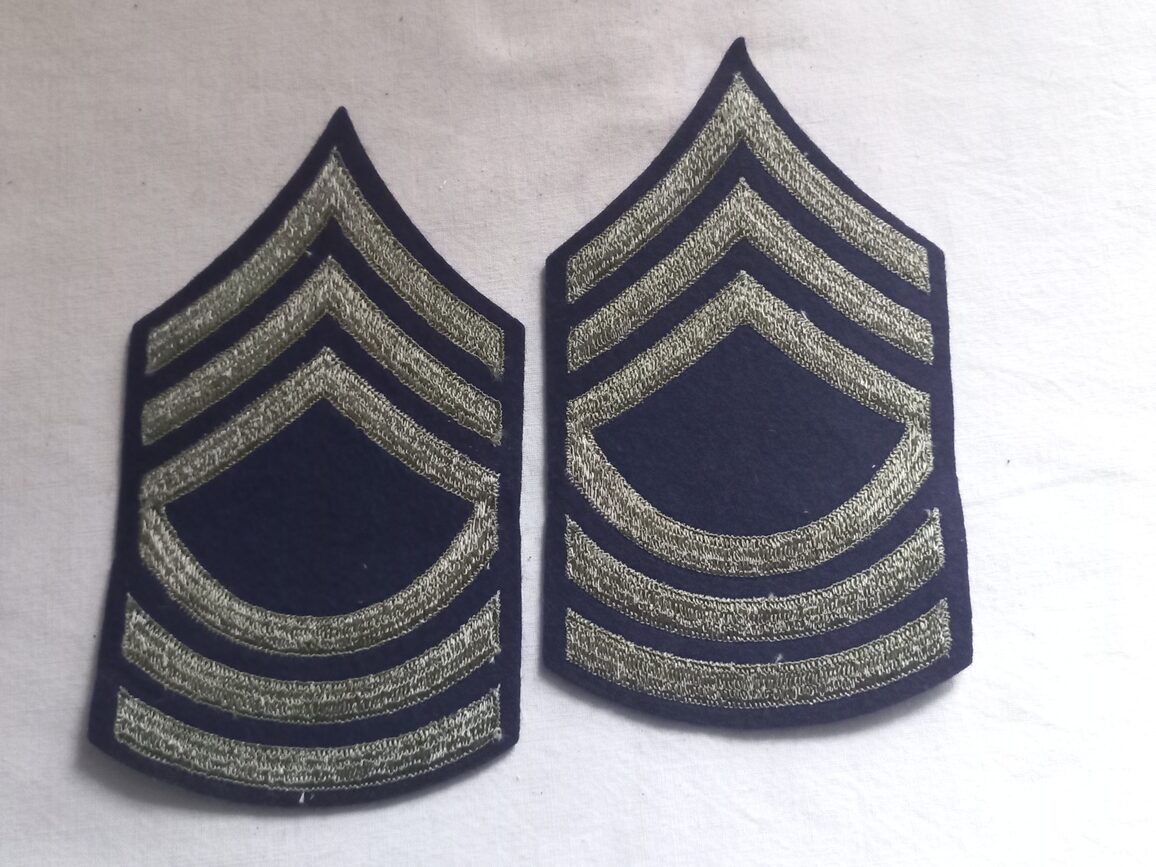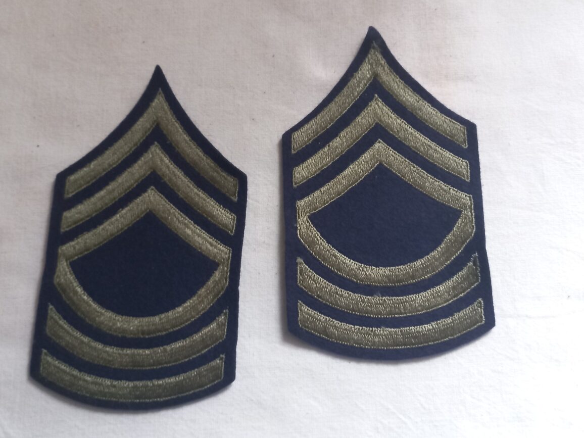 Paire de chevrons de master sergeant brodés sur tissu en TBE/EN du modèle 1942 de bonne fabrication US.