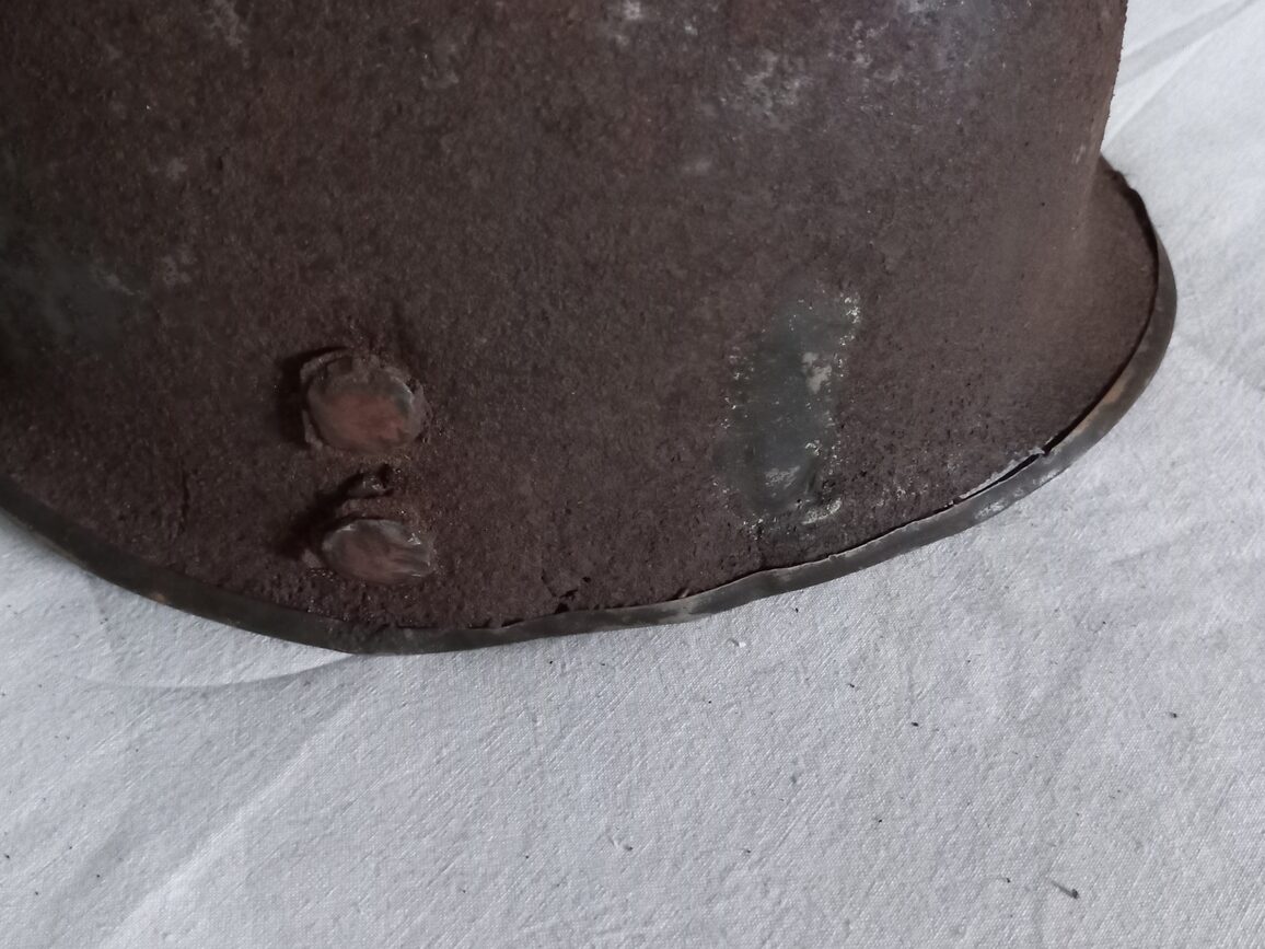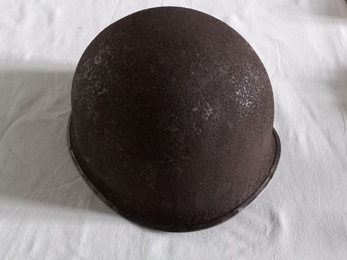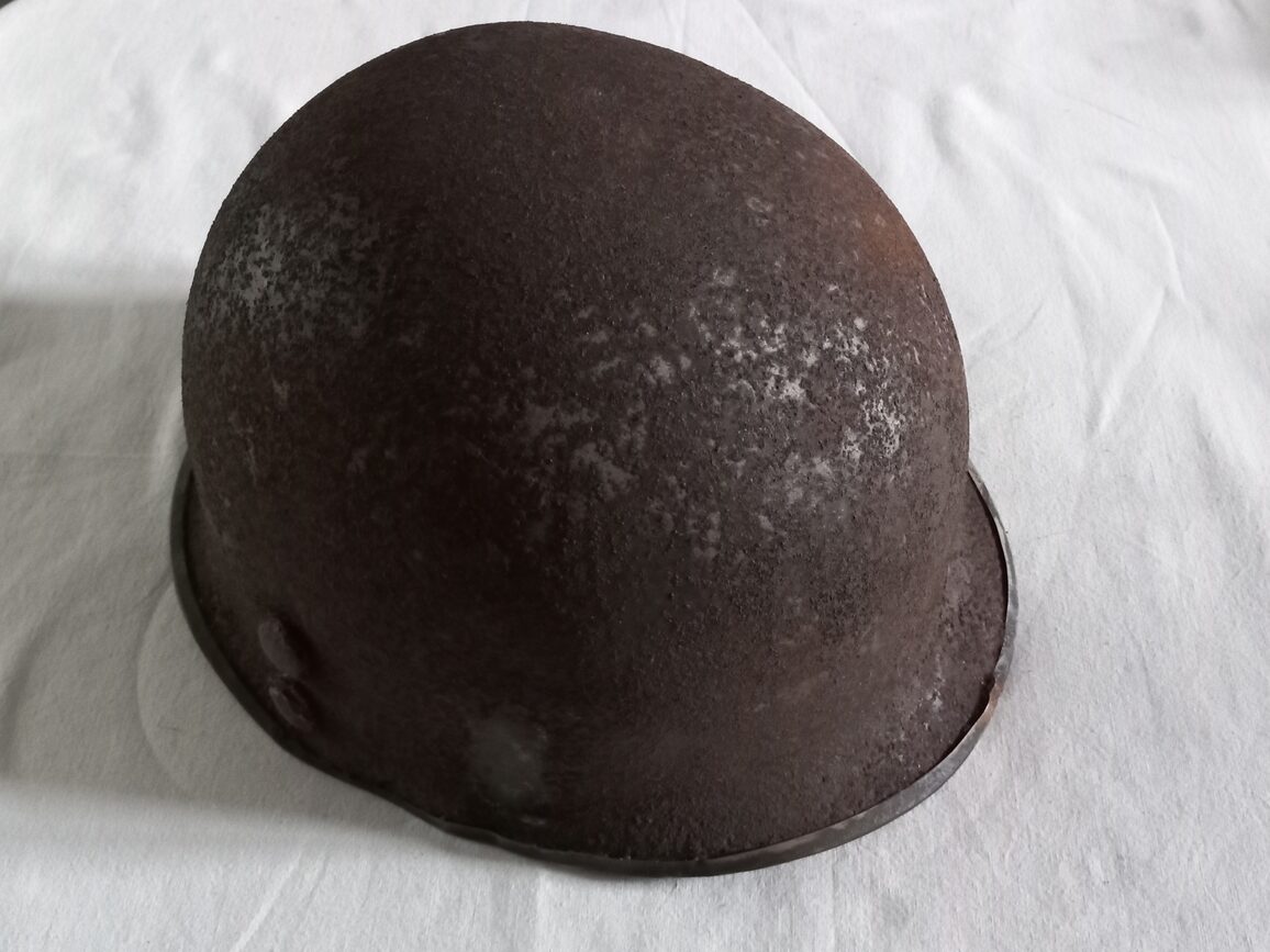 Coque de casque USM1 modifiée après guerre pour un usage domestique. Pièce terrain provenant du sud Cotentin.