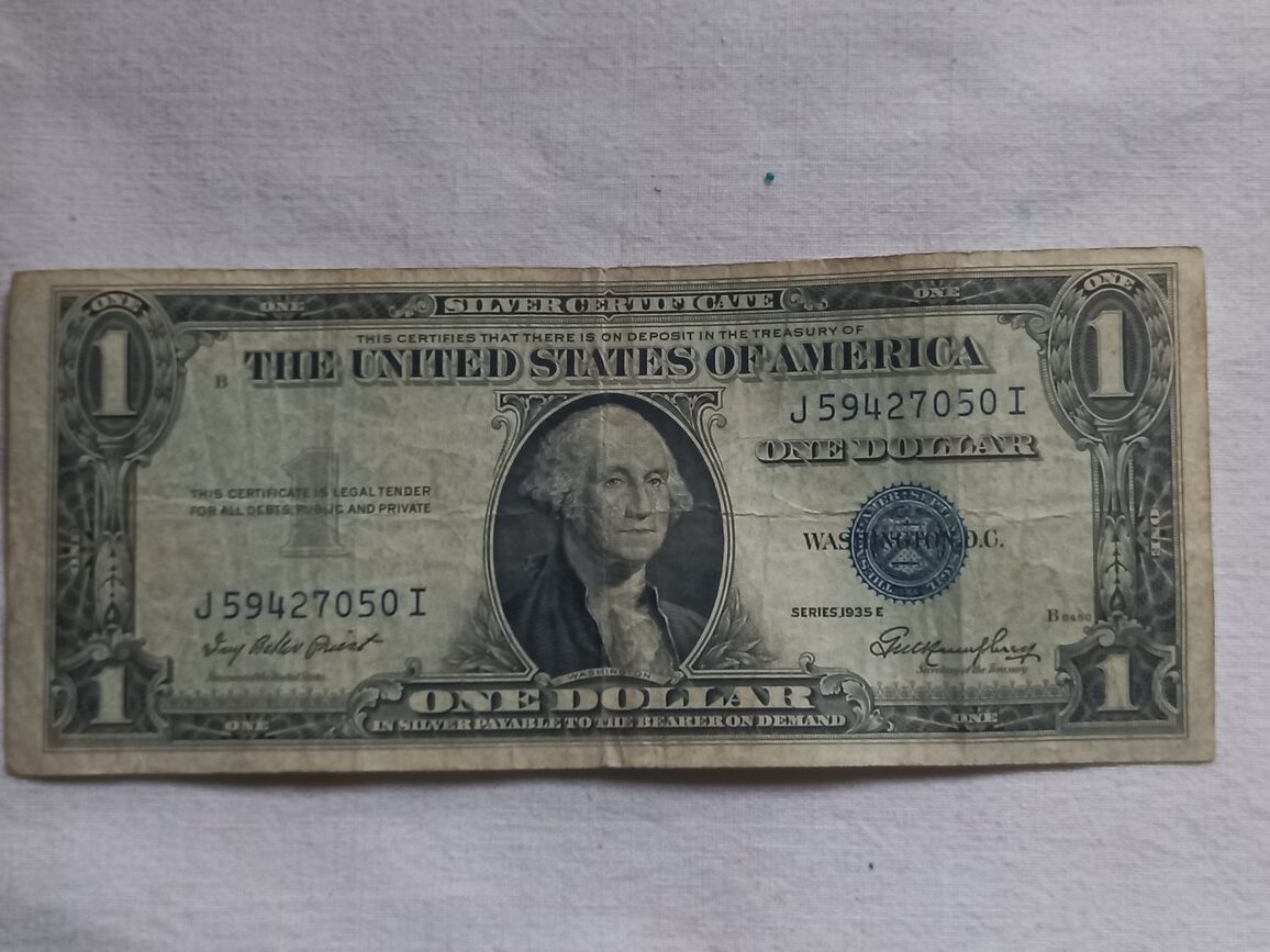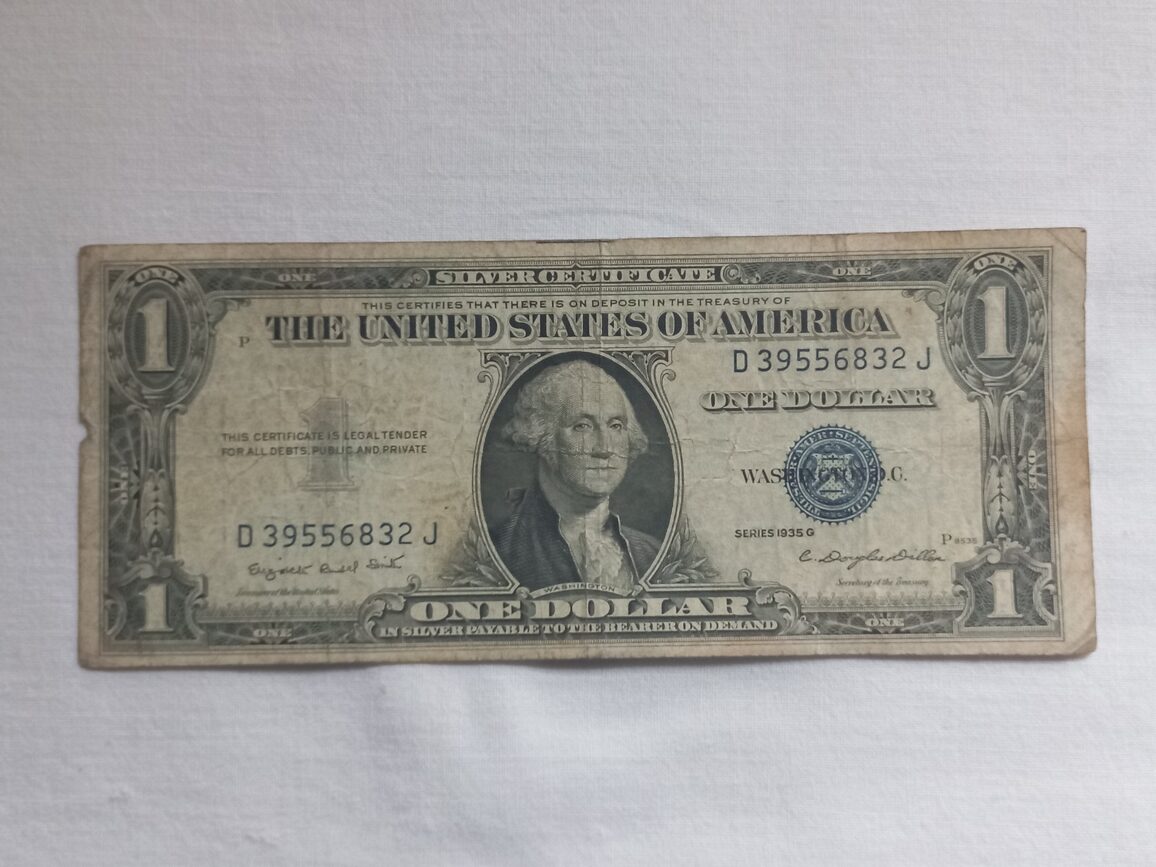Billet US d’origine de 1 dollar daté 1935 en TBE imprimé aux USA et utilisé pour le paiement dans les années 40.