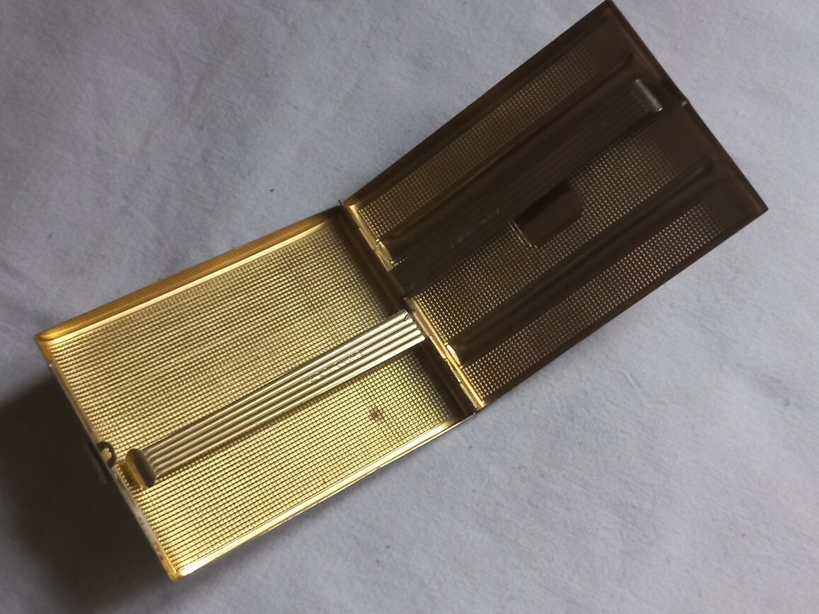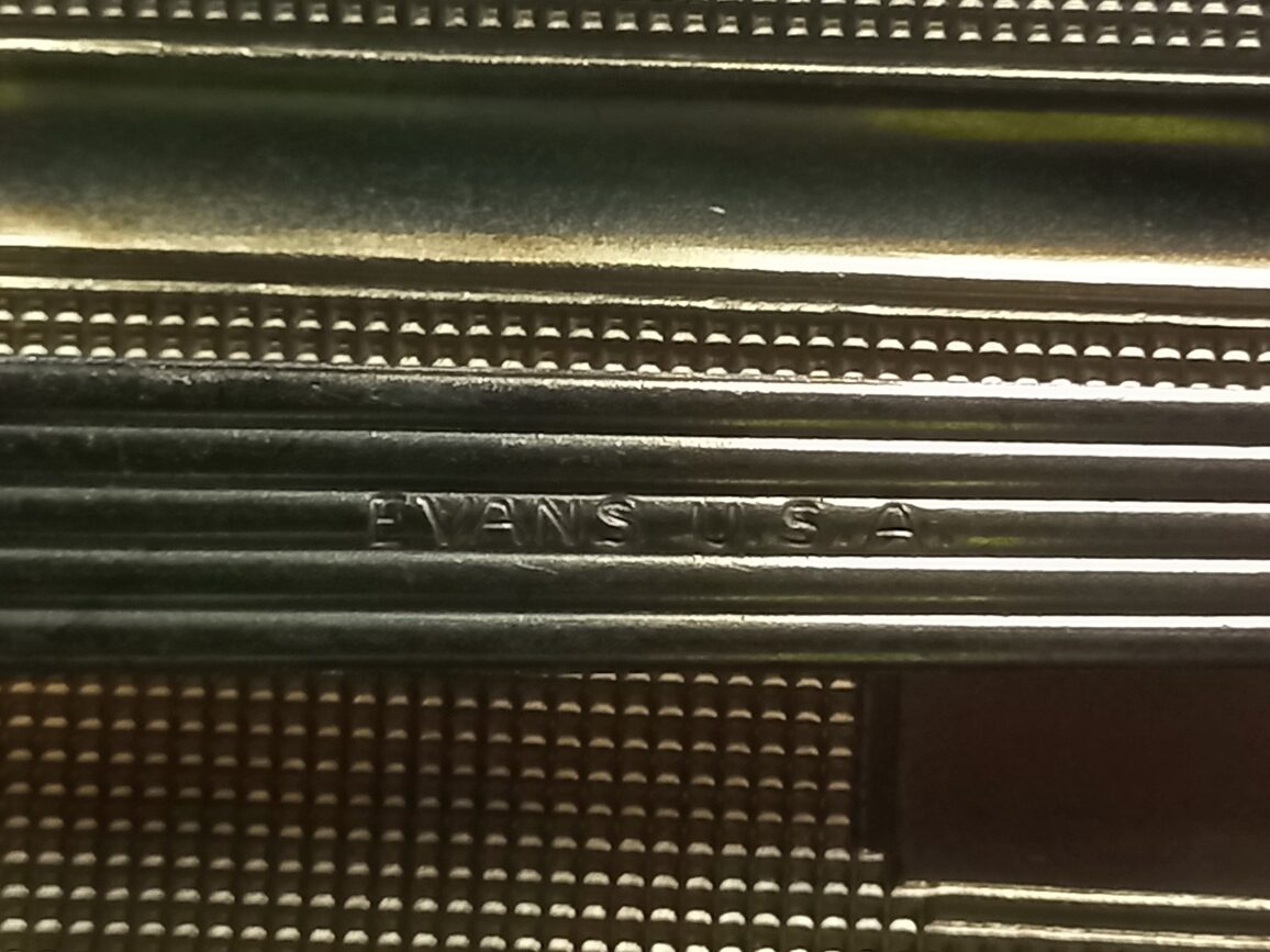 Briquet de marque EVANS en TBE de couleur vert olive. A noter un côté légèrement enfoncé.