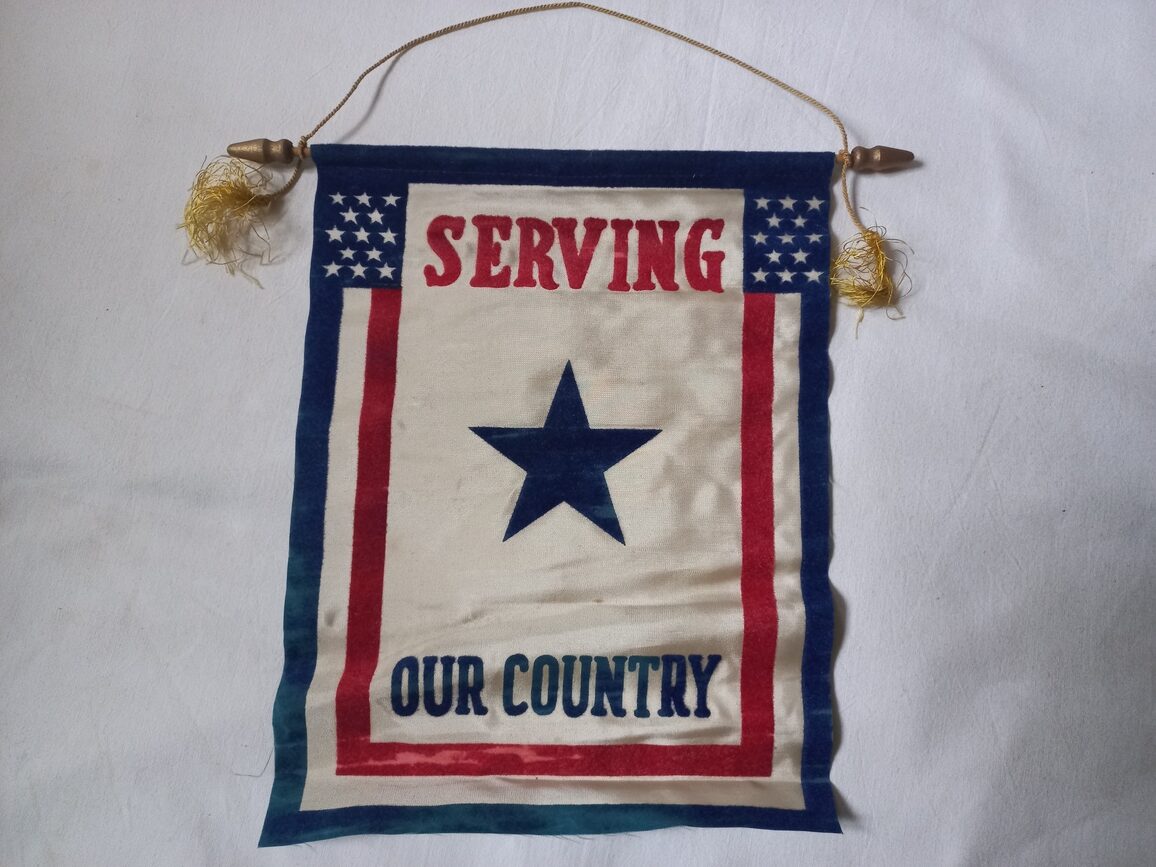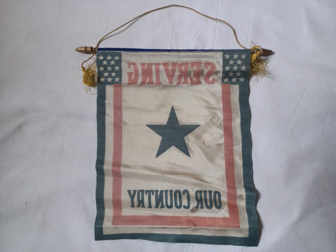 Fanion SON in SERVICE en feutrine en TBE ( 22 x 29 cm). Ce fanion mis à la fenêtre indique qu’un membre de la famille est sous l’uniforme et sert son pays.