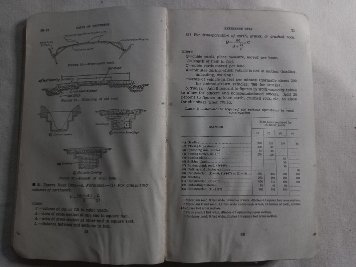 Gros manuel complet du génie de 369 pages daté 1941 sur l’emploi des moyens du génie au combat.