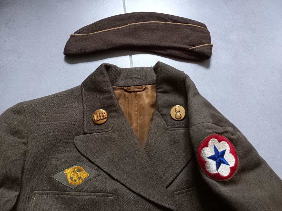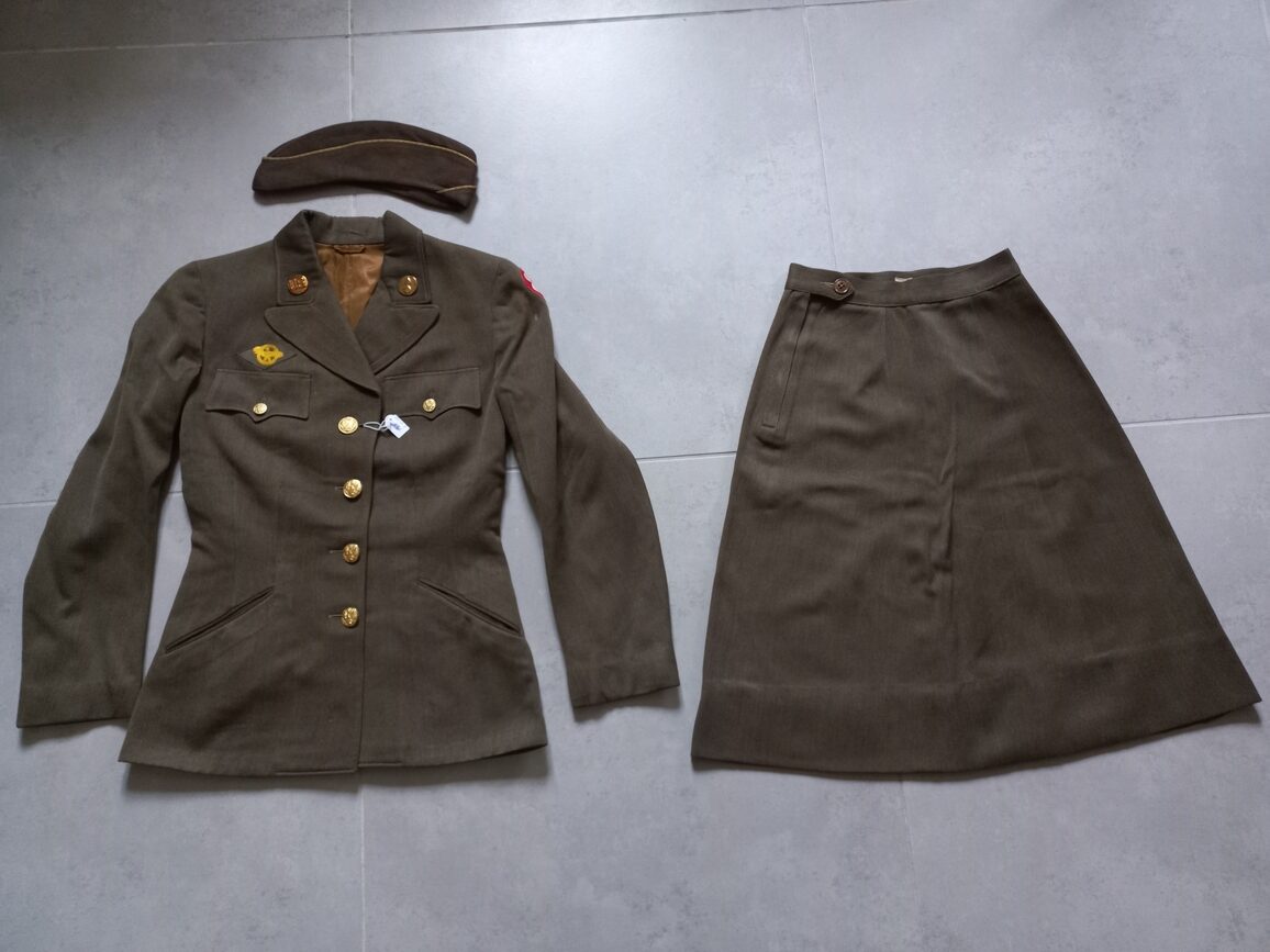 Grouping WAC original avec veste datée 1943 en TBE (taille small) et calot marqué DAVIS mais matricule illisible.