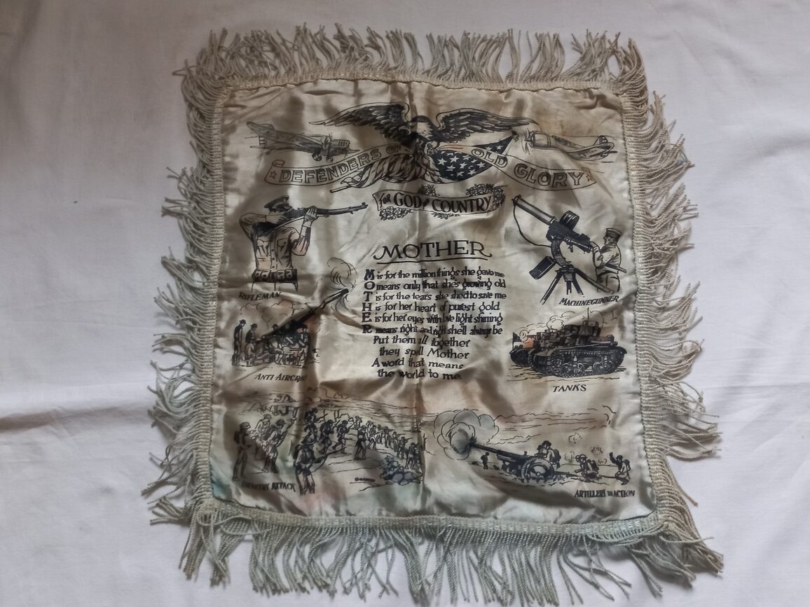 Housse en TBE (50 x 50 cm) du modèle vendu dans les PX des camps d’instruction aux USA et envoyé aux familles.