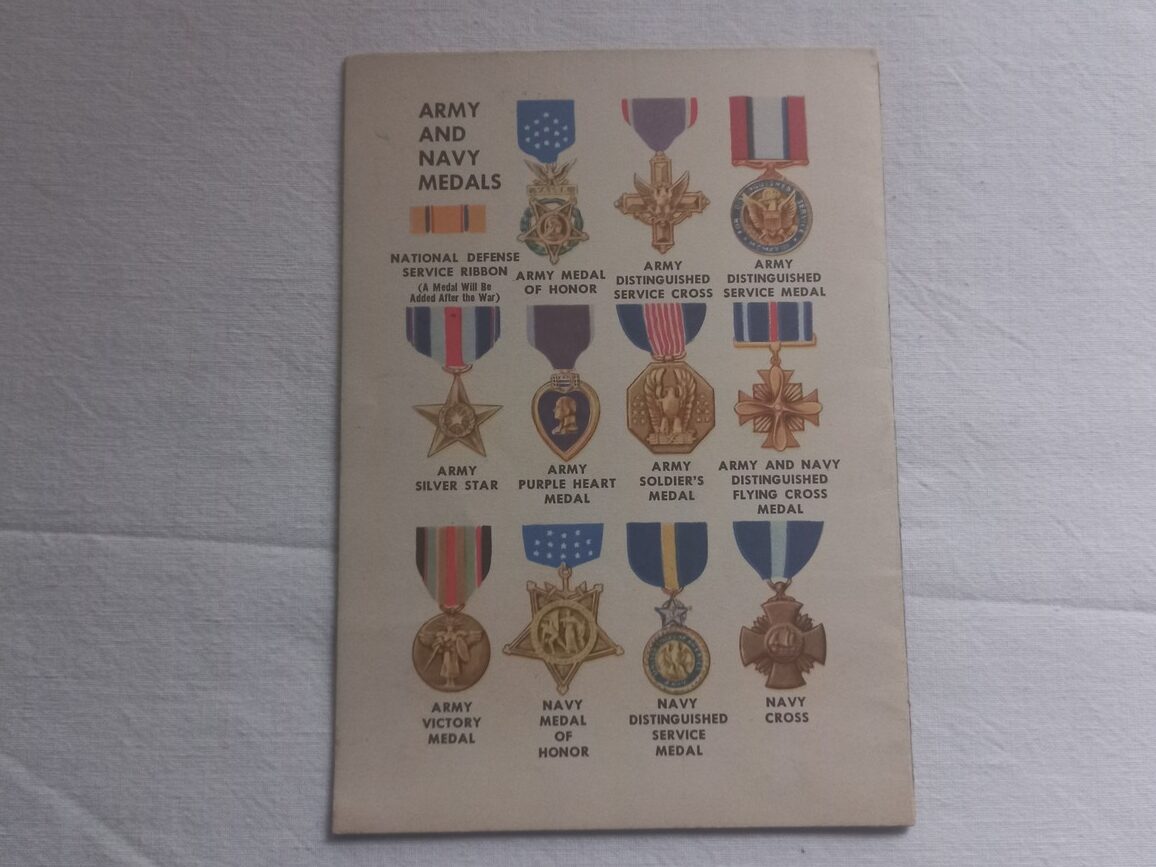 Livret en couleur de 11 pages en TBE qui rassemble des dessins sur les insignes de l’US ARMY, de l’USN et de l’USMC.