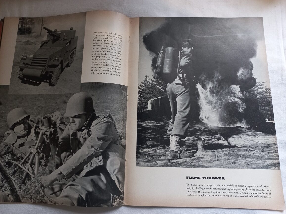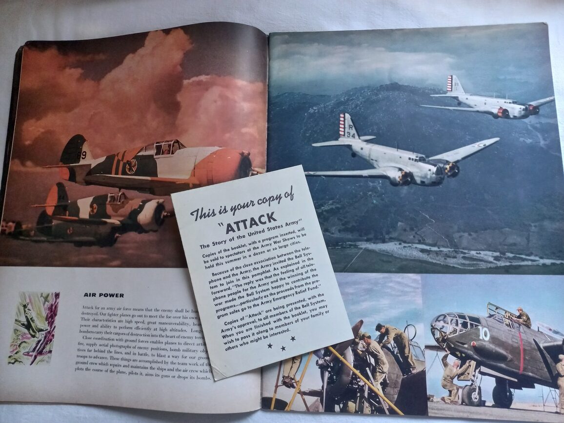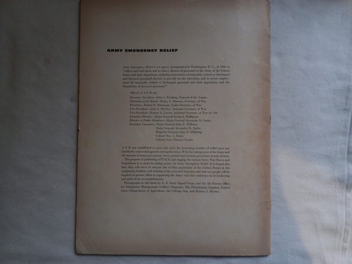 Superbe magazine ATTACK de 50 pages en TBE avec reliure HS. Nombreuses photos sur l’ US ARMY du début de guerre, probablement 1942.