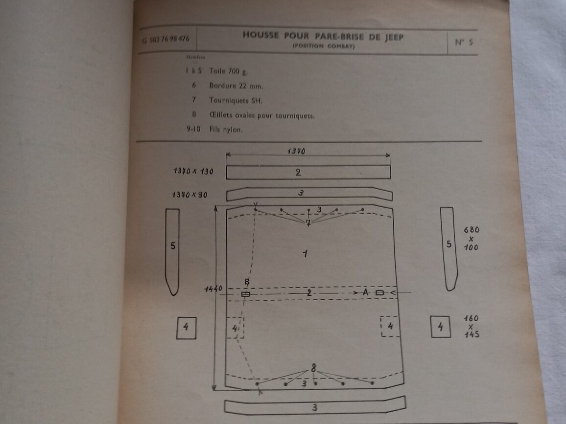 MAT 3945 daté 1962 de 12 pages en TBE sur la confection des bâches et sangles pour JEEP US et M201.