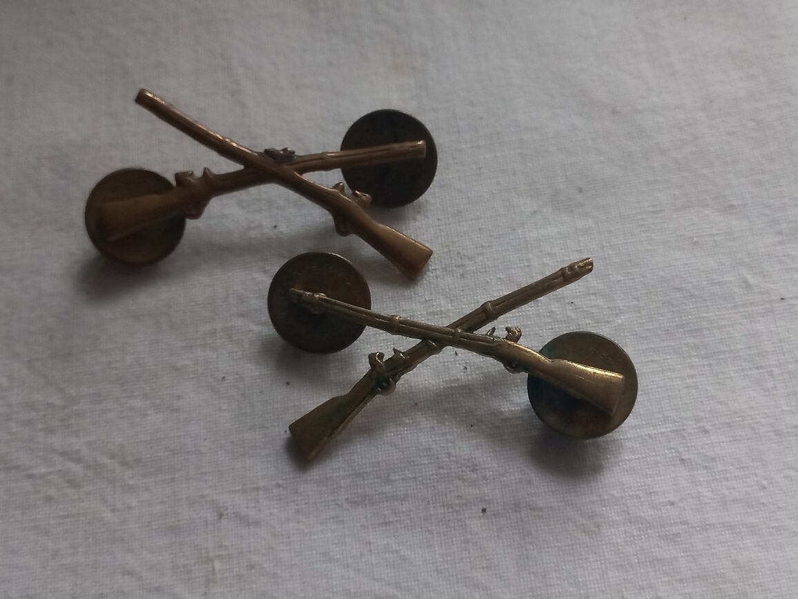 Paire d’insignes originales de col d’officier INFANTRY