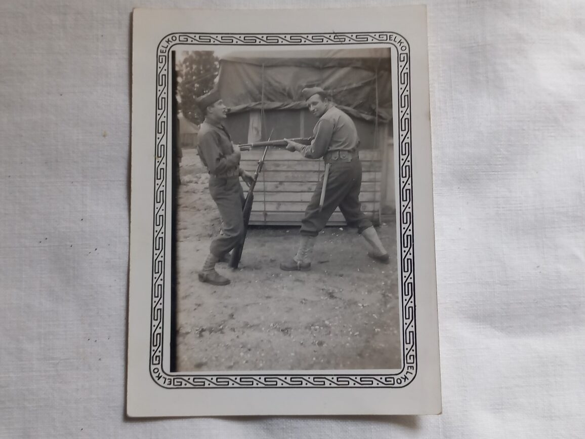 Photo originale humoristique de 2 GI en format 7.5 x 10 cm avec inscriptions au dos.
