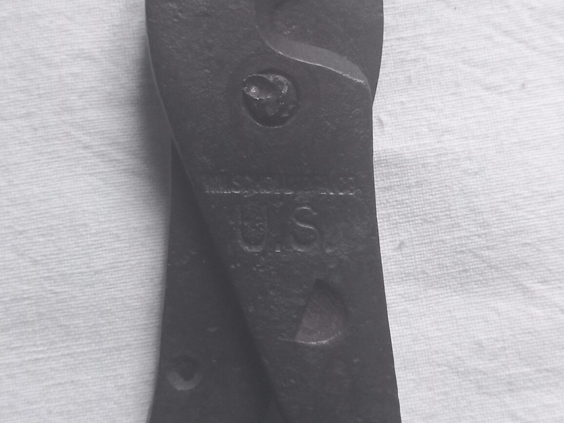 Pince à sertir les détonateurs marquée US WM.SCHOLLHORN. CO. en TBE. Outil incontournable utilisé pour la mise en œuvre des explosifs.