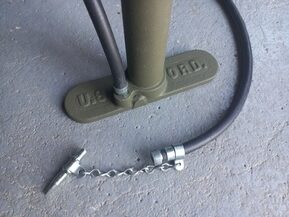 Pompe à air US  originale restaurée avec reproduction du tuyau et équipé. Voir photo ci jointe du lot de bord d’origine, repère C.