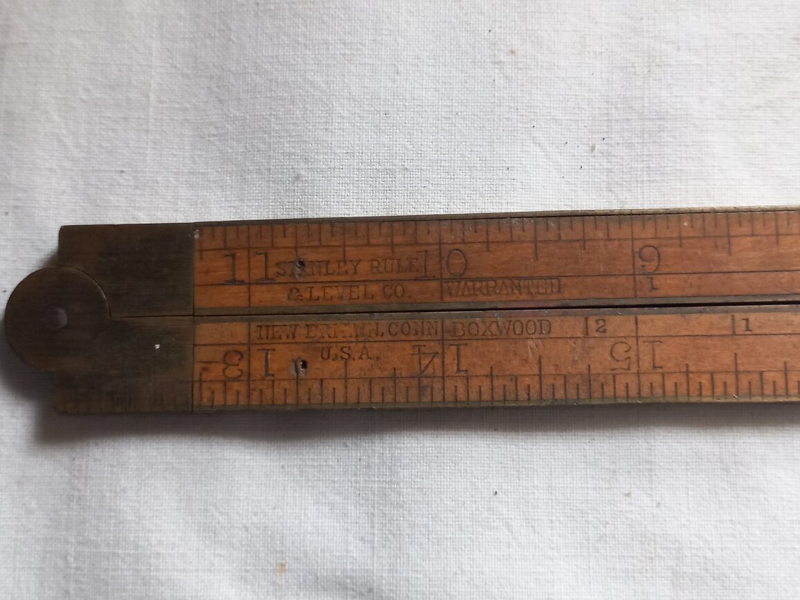 Règle pliante en bois du SIGNAL CORPS en TBE. Ce modèle se range dans la trousse à outils en cuir TE-5 (voir photo).