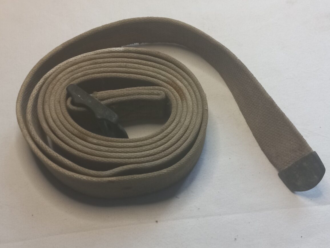 Sangle originale d’occasion de Bedding Roll M35 couleur OD3 en TBE. Modèle à boucle moulée (L230 cm).