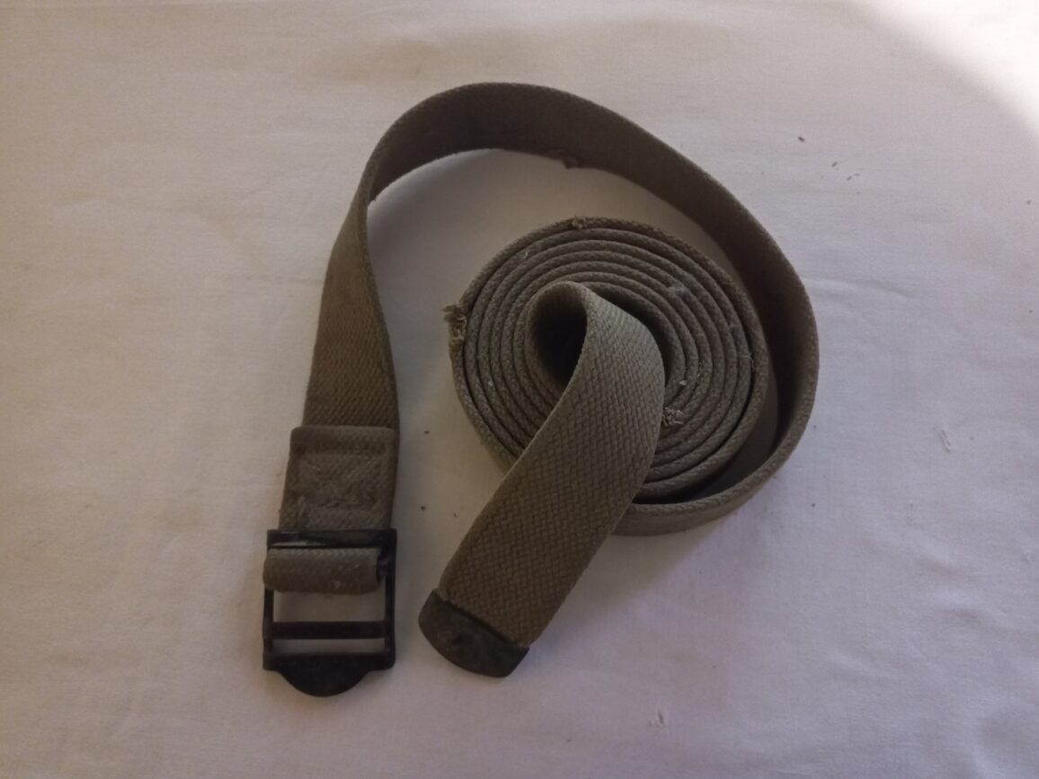 Sangle originale de Bedding Roll M35 couleur OD3 en TBE. Modèle d’occasion à boucle emboutie (L230 cm). Une seule disponible.