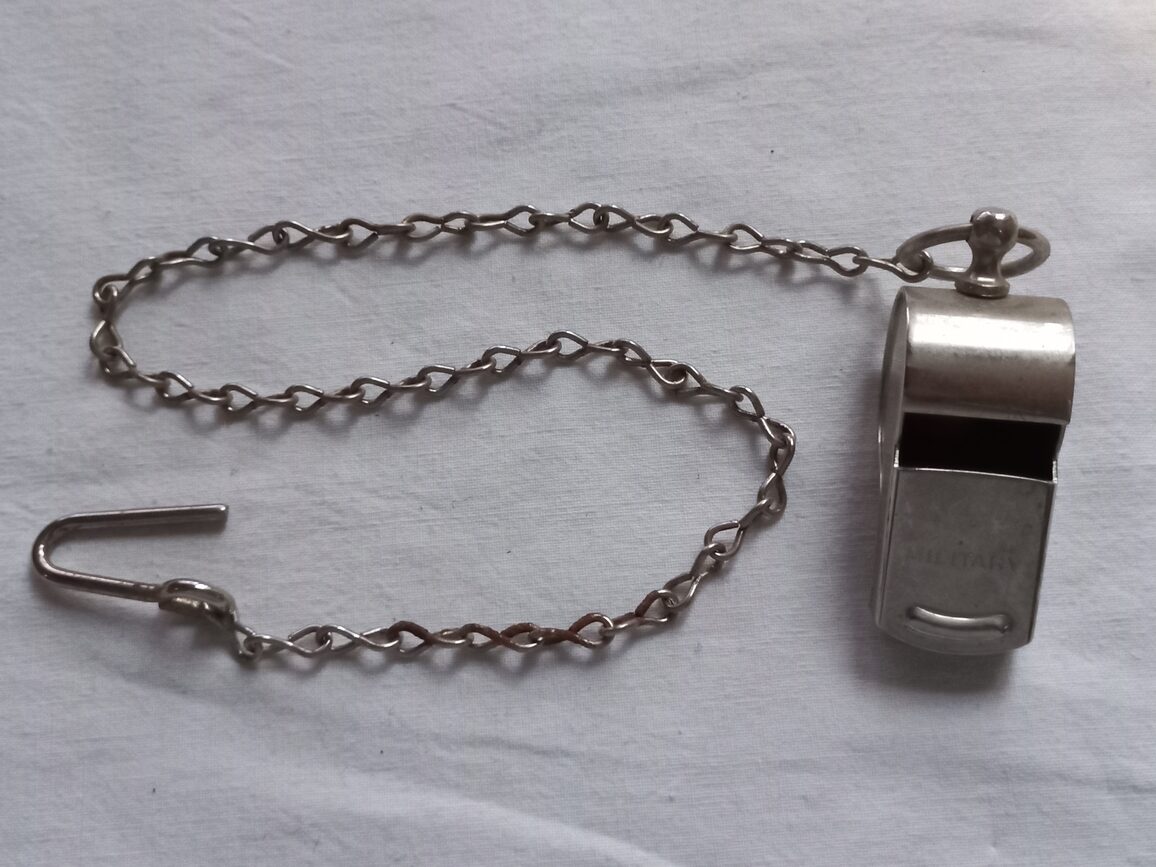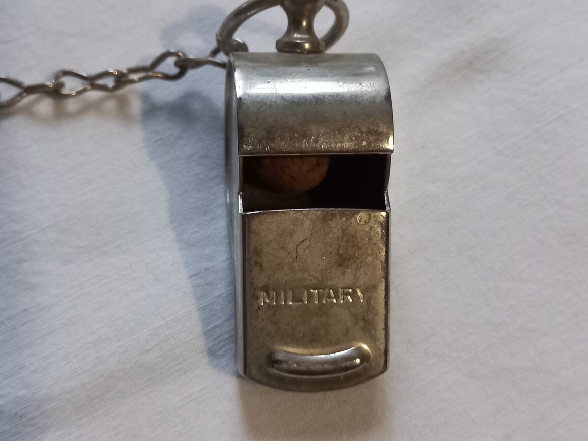 Sifflet en laiton en TBE marqué « military/made in usa » vendu avec sa chainette originale.