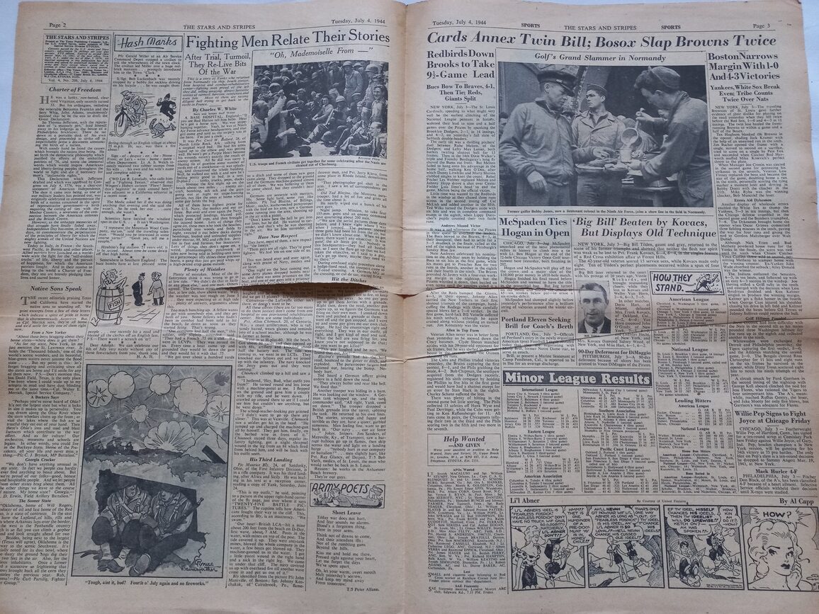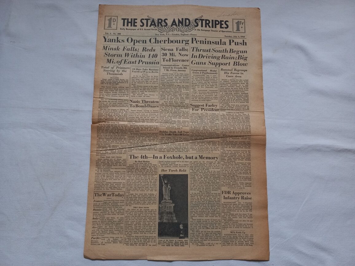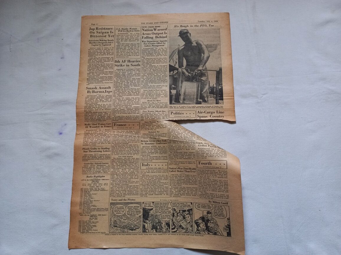 Journal de 4 pages distribué à la troupe à l’arrière et sur le front comme sur la photo ci jointe. Une grosse déchirure à signaler.