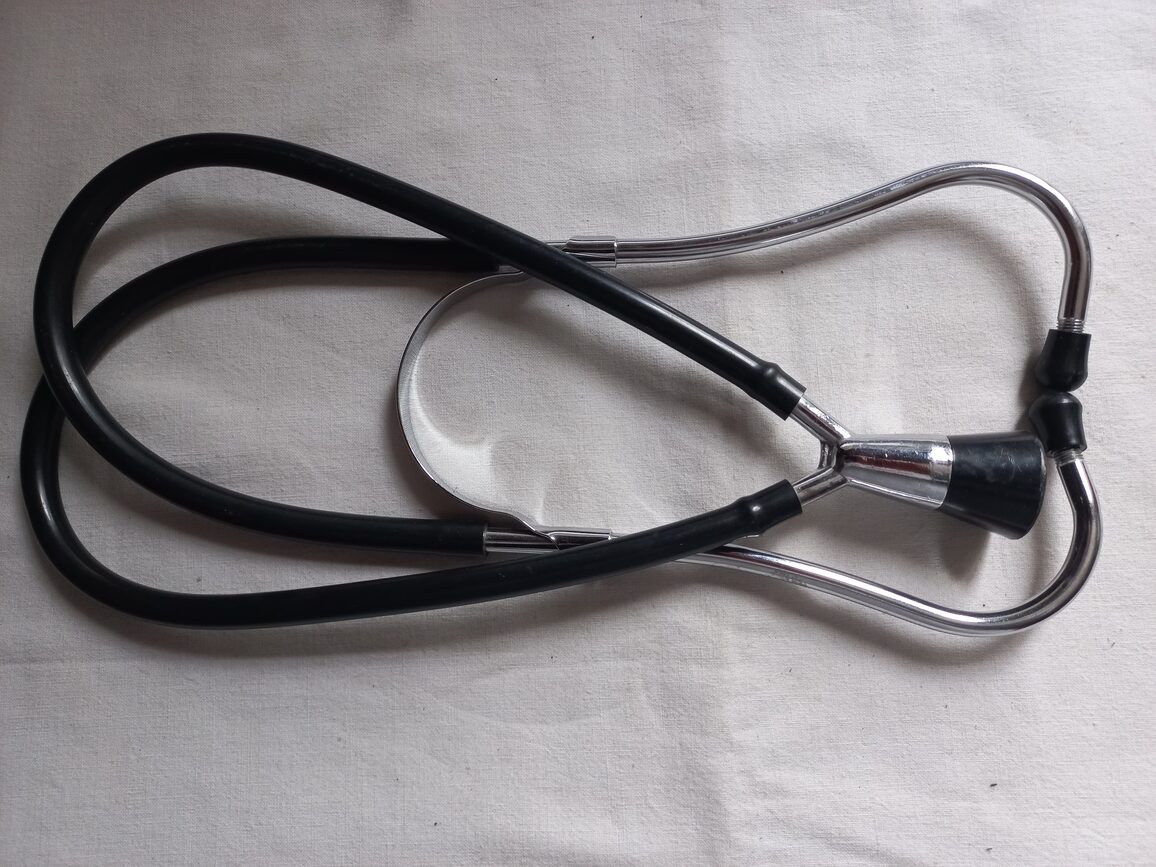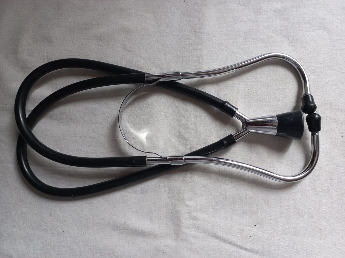 Stéthoscope US original du modèle utilisé jusqu’en 1950. Le caoutchouc des tuyaux est encore souple. Voir photo de 1945 ci jointe.