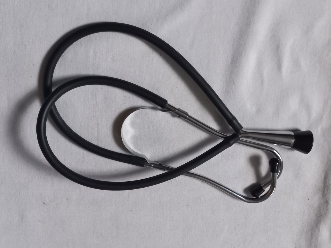 Stéthoscope US original du modèle utilisé jusqu’en 1950. Le caoutchouc des tuyaux est souple. Voir photo de 1945 ci jointe.