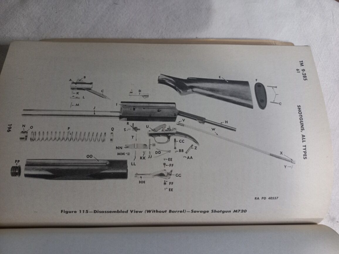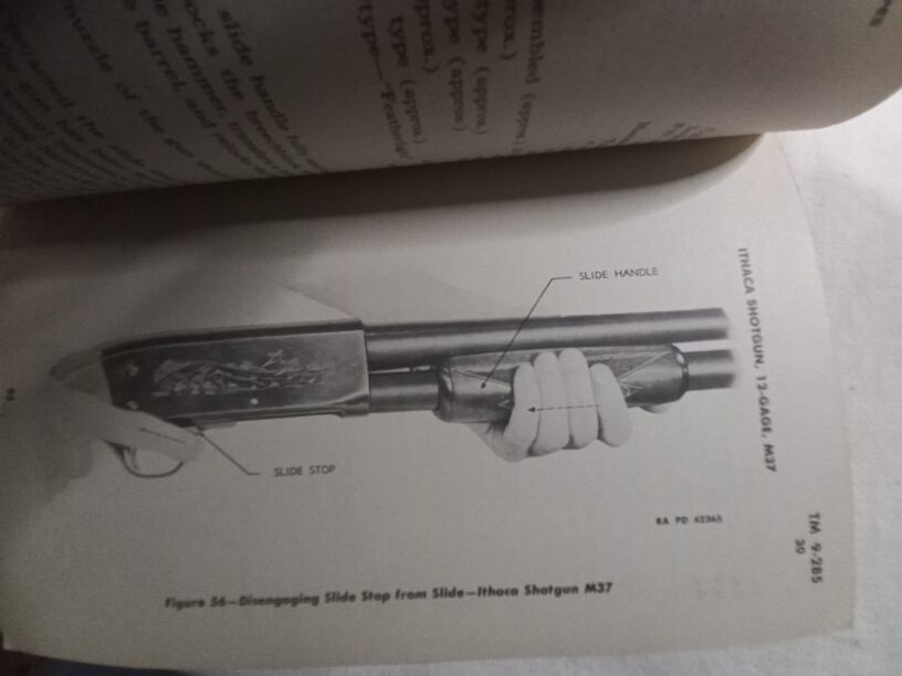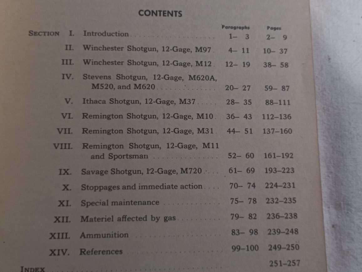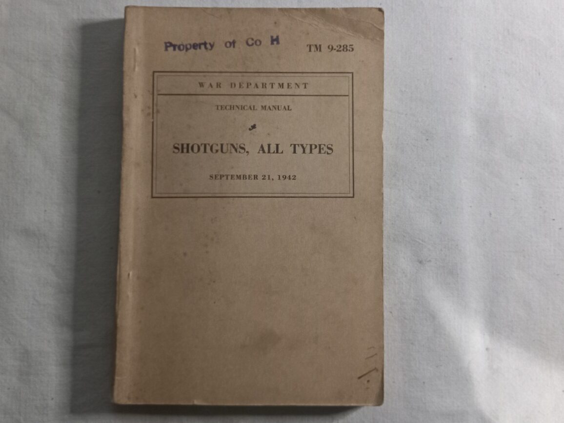 TM 9-285 daté1942 (SHOTGUNS ALL TYPES) de 257 pages en TBE. Ouvrage très complet sur tous les modèles de fusil à pompe en service dans l’US ARMY.